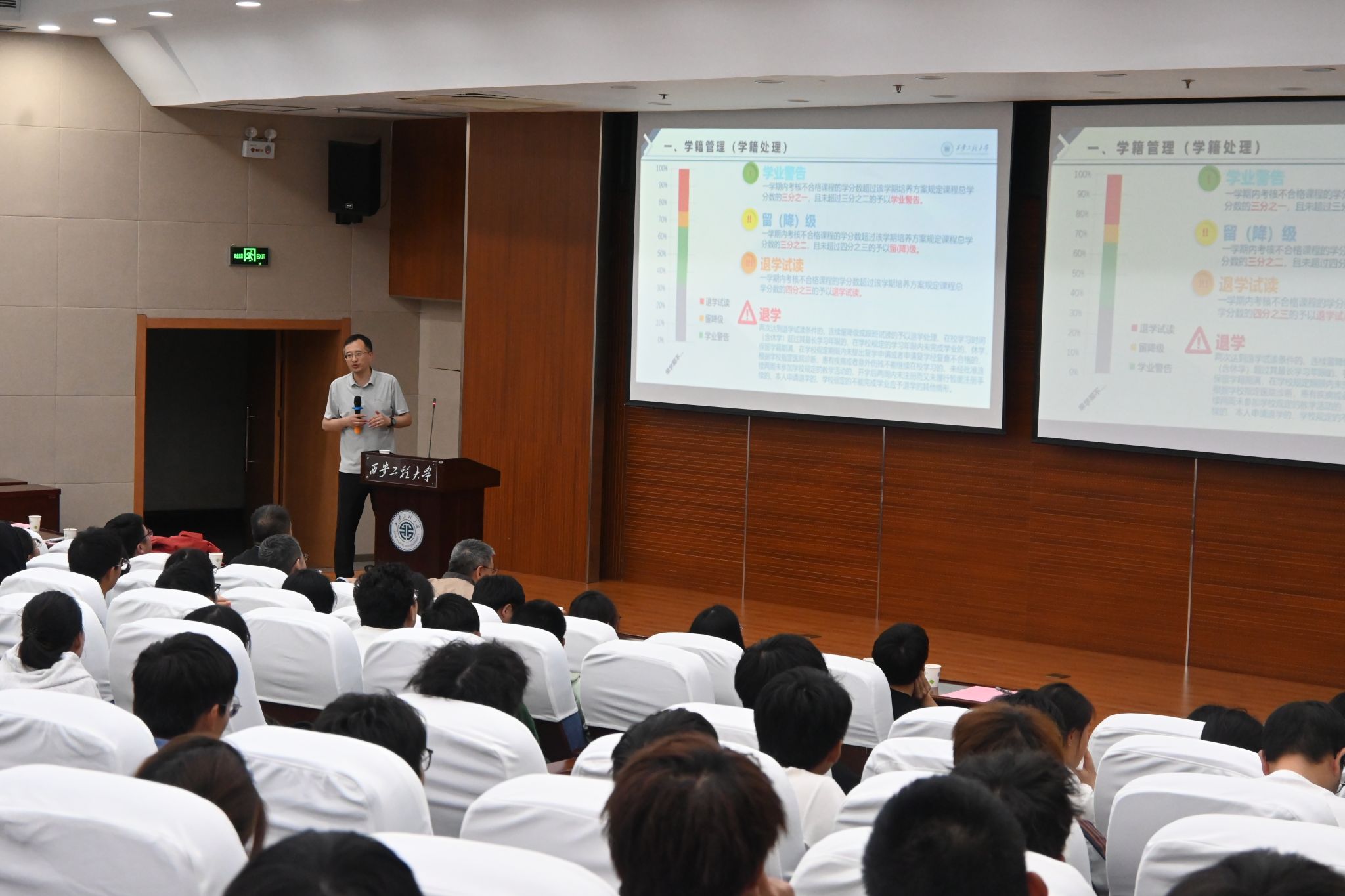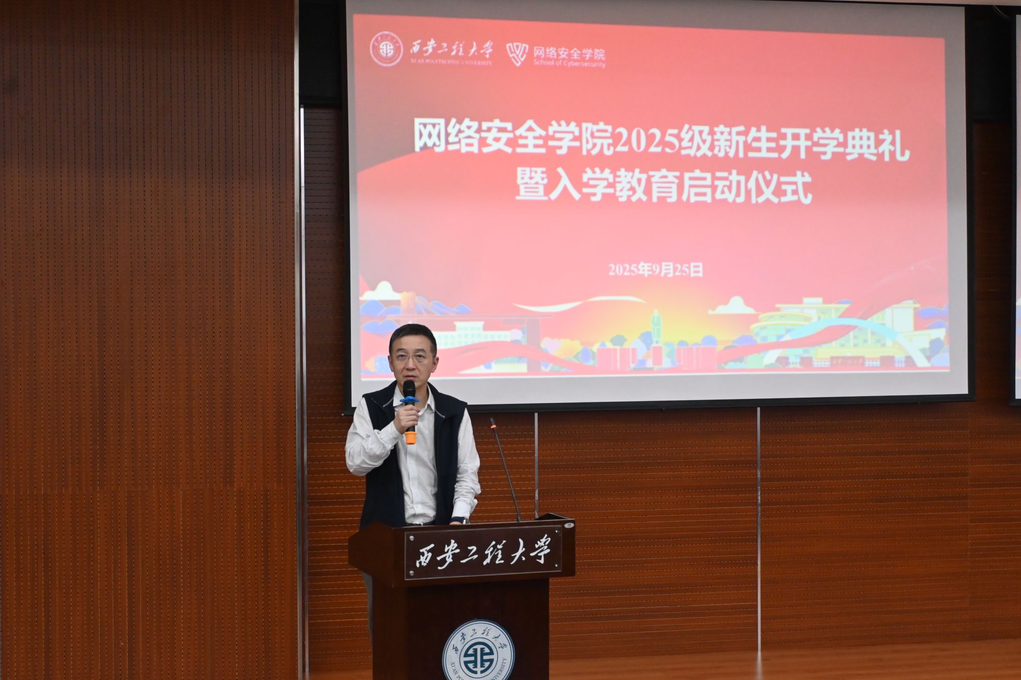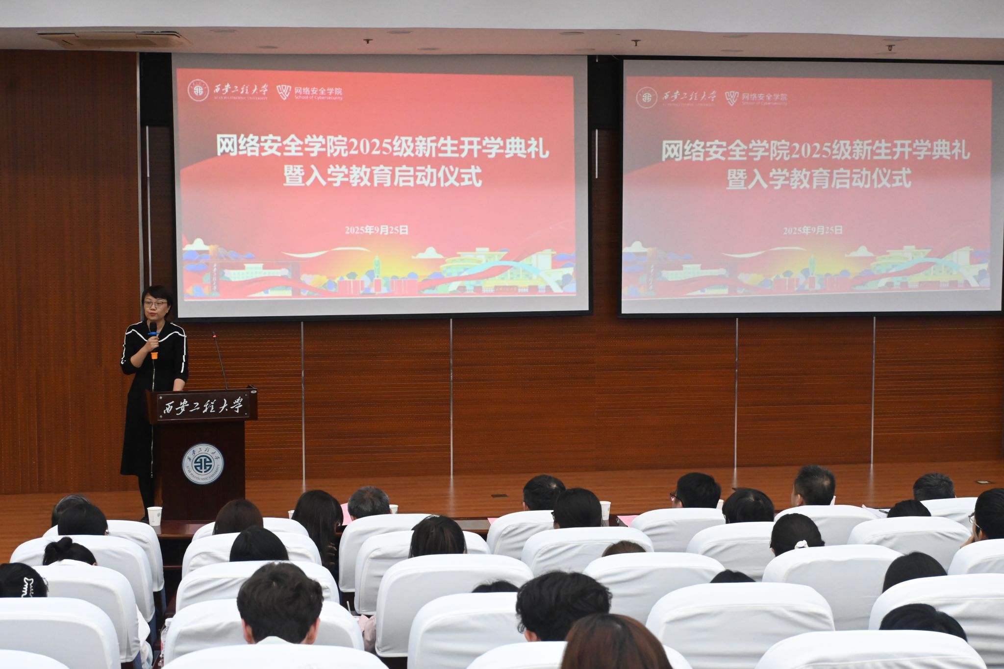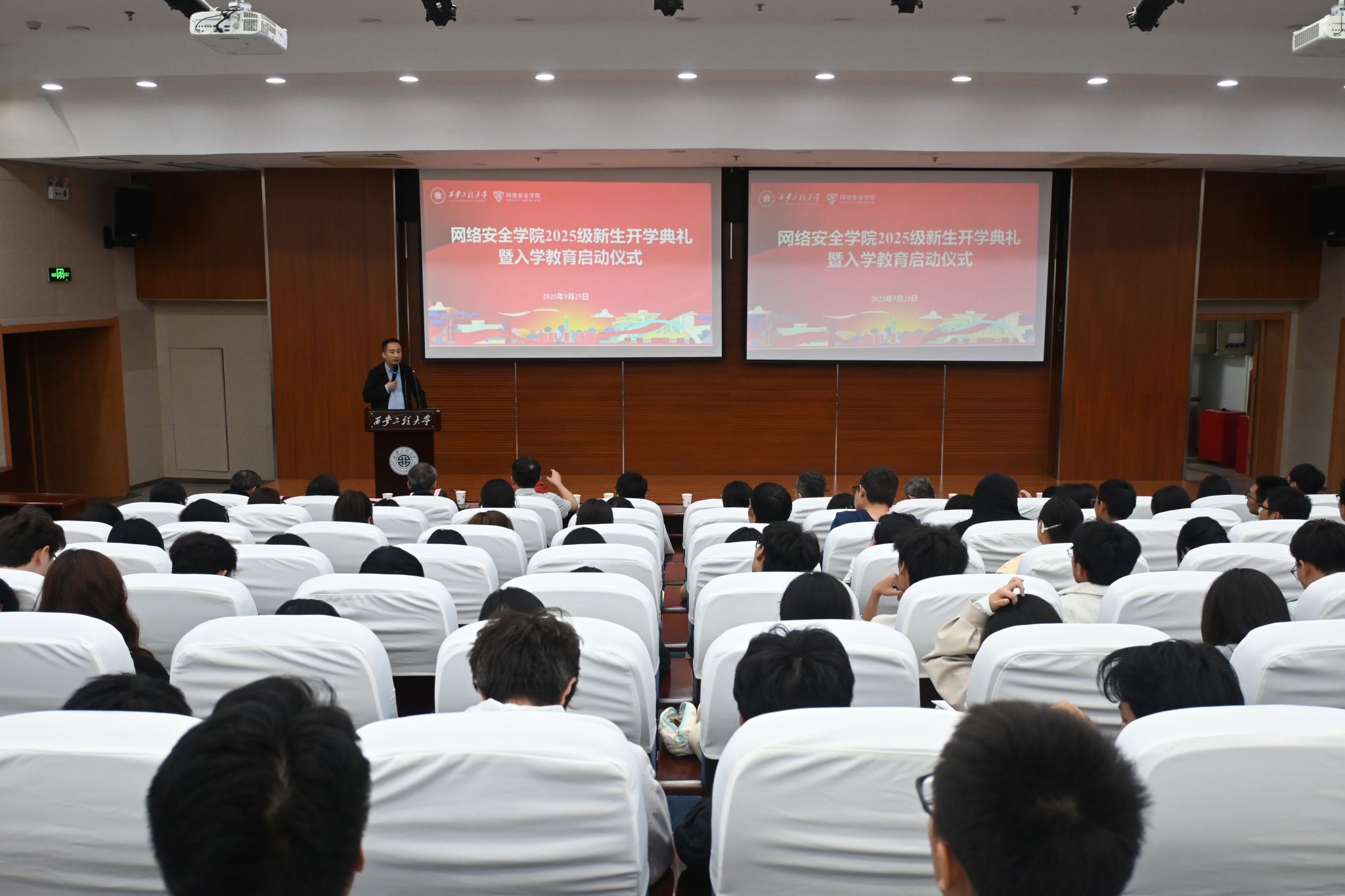 9月25日晚,网络安全学院2025级新生开学典礼暨入学教育启动仪式在临潼校区图书馆二楼报告厅举行,学院领导班子、教师代表、2025级各班班主任、全体辅导员以及全体2025级新生参加典礼。典礼由学院党总支副书记刘蓉主持。