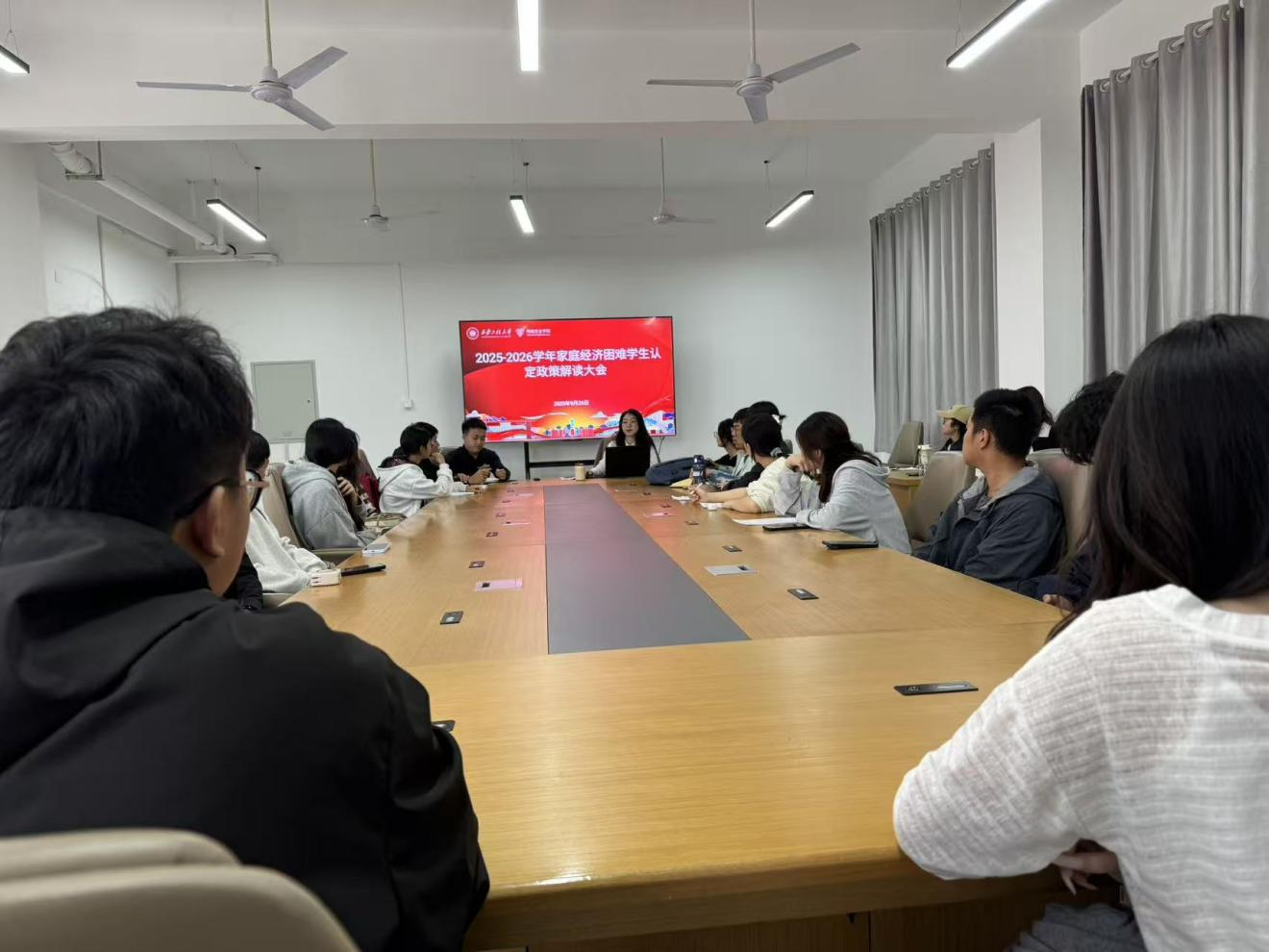 会议伊始,曹子凡着重强调了家庭经济困难学生认定工作的核心意义。她指出,此项工作是推进教育公平、实现精准资助的关键环节,直接关系到资助资源能否精准对接学生需求。随后,她对认定全流程进行细致拆解,从个人提交申请、班级组织评议,到年级开展评定、学院最终审核,逐一明确各环节的操作规范与核心要求,使学生们清晰掌握认定工作的完整脉络。同时,曹子凡围绕2025年家庭经济困难学生认定的最新政策、具体标准及实施流程展开深度解读,帮助学生全面把握政策细节,避免认知偏差。她特别说明,家庭经济困难学生认定并非仅关注经济状况,更会兼顾学生个人发展需求,切实关注学生成长。她鼓励符合条件的学生主动申请,同时反复强调"诚信申请"的重要性,提醒学生如实填报信息,确保有限的资助资源精准送达最需要的学生手中。