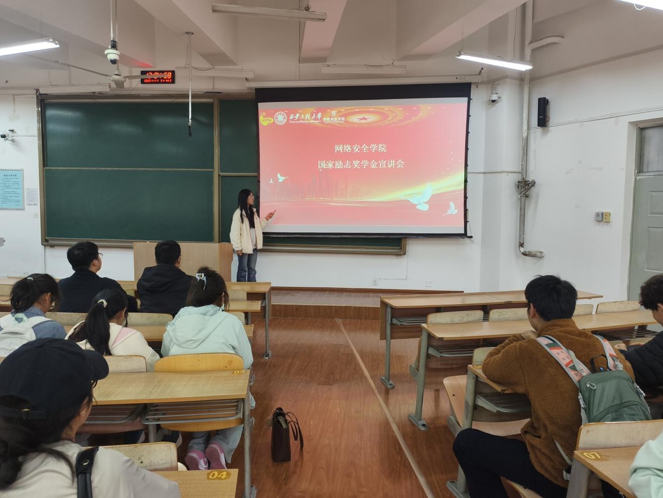 为确保国家资助政策精准落地,激励家庭经济困难学生勤奋治学,2025年10月15日,网络安全学院在临潼校区B-137教室举办2024-2025学年国家励志奖学金政策宣讲会。学院学生资助宣传大使雷雨恬主讲,22级、23级、24级全体班团干部参会。