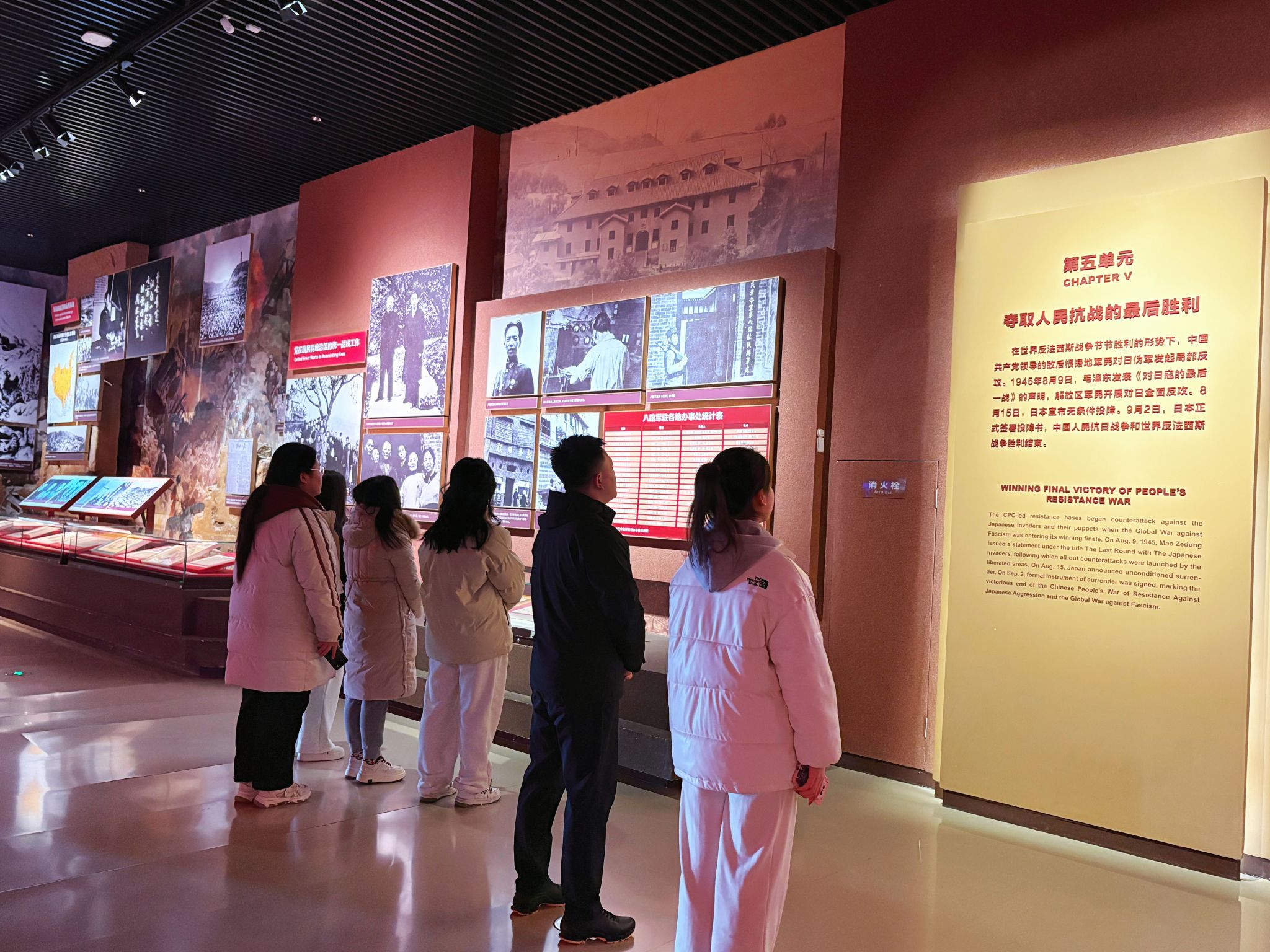 抵达延安后,学子们走进延安革命纪念馆。馆内一张张珍贵照片,一件件历史文物,生动再现了党中央在延安十三年的峥嵘岁月。在纪念馆的文物与史料前,学子们驻足凝视,读懂了先辈们在艰难中坚守,在困苦中奋斗的信念。学子们也直观感受到革命先辈“坚定正确的政治方向”的理想信念与“自力更生、艰苦奋斗”的延安精神。
