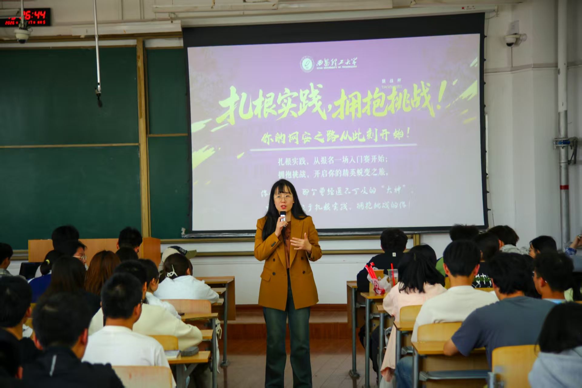 为进一步提升学院学生科创竞赛能力,浓厚校园学术氛围,激发网络安全专业学子创新热情,营造良好学风院风。4月17日,网络安全学院举办“一站式”学生社区网安思享汇系列活动之“挑战杯”竞赛专题讲座。本次讲座特邀西安理工大学冯雨老师主讲,学院党总支副书记刘蓉、团委副书记曹子凡、辅导员白江龙及大一大二全体学生参加,活动由学工办副主任贾天昱主持。
